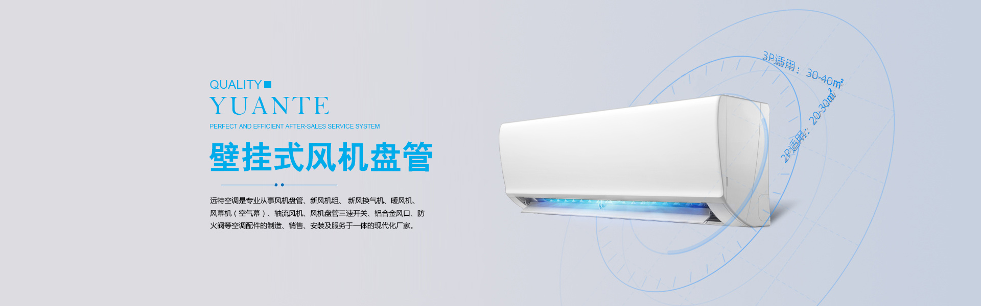 山東遠(yuǎn)特空調(diào)設(shè)備有限公司座落于素有“九達(dá)天衢、神京門(mén)戶”美譽(yù)之稱的中央空調(diào)城:德州,是專業(yè)從事風(fēng)機(jī)盤(pán)管、新風(fēng)機(jī)組、 新風(fēng)換氣機(jī)、暖風(fēng)機(jī)、 風(fēng)幕機(jī)(空氣幕)、軸流風(fēng)機(jī)、風(fēng)機(jī)盤(pán)管三速開(kāi)關(guān)、鋁合金風(fēng)口、防火閥等空調(diào)配件的制造、銷售、安裝及服務(wù)于一體的現(xiàn)代化廠家。 遠(yuǎn)特空調(diào)生產(chǎn)的產(chǎn)品主要有: ?風(fēng)機(jī)盤(pán)管類:臥式暗裝、臥式明裝、立式暗裝、立式明裝、壁掛式、立柱式風(fēng)機(jī)盤(pán)管等; 新風(fēng)機(jī)組類:吊頂式新風(fēng)機(jī)組、立式新風(fēng)機(jī)組、臥式新風(fēng)機(jī)組等; 新風(fēng)換氣機(jī)類:吊頂式新風(fēng)換氣機(jī)、臥式新風(fēng)換氣機(jī)、立式新風(fēng)換氣機(jī)等; 空調(diào)配件類:鋁合金風(fēng)口、對(duì)開(kāi)多葉風(fēng)量調(diào)節(jié)閥、防火閥、排煙風(fēng)口、防火風(fēng)口、板式排煙口、三速開(kāi)關(guān)、溫控器、電動(dòng)閥、新風(fēng)機(jī)組表冷器等; 風(fēng)機(jī)類:玻璃鋼負(fù)壓風(fēng)機(jī)、暖風(fēng)機(jī)、軸流風(fēng)機(jī)、離心風(fēng)機(jī)、斜流風(fēng)機(jī)、混流風(fēng)機(jī)、風(fēng)機(jī)箱等; 風(fēng)幕機(jī)類:普通貫流式風(fēng)幕機(jī)(遙控型、感應(yīng)型)、電熱型貫流式風(fēng)幕機(jī)(遙控型、感應(yīng)型)、離心式風(fēng)幕機(jī)等;